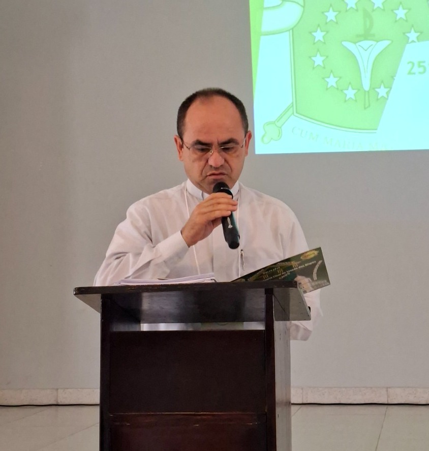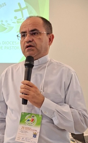 O palestrante da conferência da 25ª Assembleia de Pastoral da Diocese de Nazaré, que aconteceu na parte da manhã, das 9h45 às 11h30, foi o Pe. Mathias Soares, coordenador da Comissão de Cultura e Educação da Arquidiocese de Natal, que discorreu sobre os principais pontos de dois discursos: o discurso do Papa Leão XIV, na Audiência aos Membros do Colégio Cardinalício, em 10 de maio de 2025; e o discurso do Papa Francisco durante sua visita apostólica ao Brasil, por ocasião da XXVIII Jornada Mundial da Juventude, em 28 de julho de 2013, dirigido aos bispos responsáveis do Conselho Episcopal Latino-Americano (CELAM), na Reunião Geral da Coordenação.