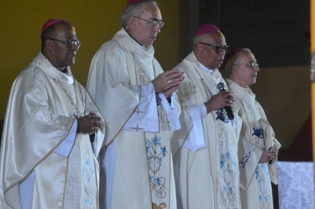 O dia 05 de agosto de 2018 ficará marcado na história e na memória de todos aqueles que participaram, ou mesmo acompanharam (pelos veículos de comunicação), da celebração festiva pelos 100 Anos de Vida e Missão da Diocese de Nazaré. Milhares de pessoas – entre fiéis leigos e leigas, religiosos(as), seminaristas e membros do clero – marcaram presença na solene concelebração eucarística do centenário, que foi presidida pelo Núncio Apostólico Dom Giovanni d’Aniello, representante do Papa Francisco no Brasil. A Santa Missa aconteceu, às 16h, na Praça Papa João XXIII, em frente à Catedral Nossa Senhora da Conceição, na cidade de Nazaré da Mata-PE. Participaram e concelebraram a eucaristia outros 12 arcebispos e bispos de dioceses e arquidioceses que integram o Regional Nordeste2 da CNBB.
