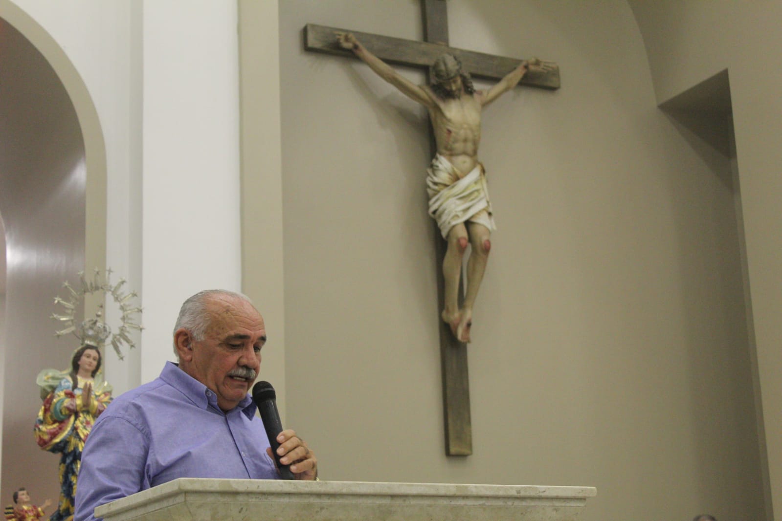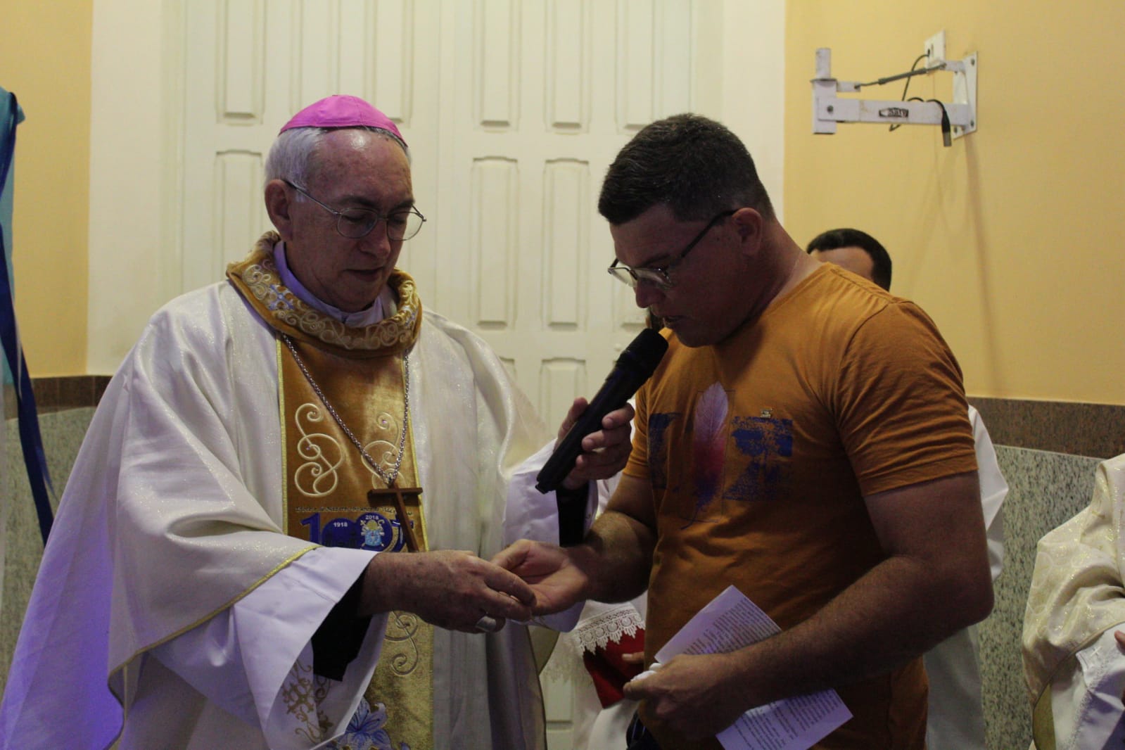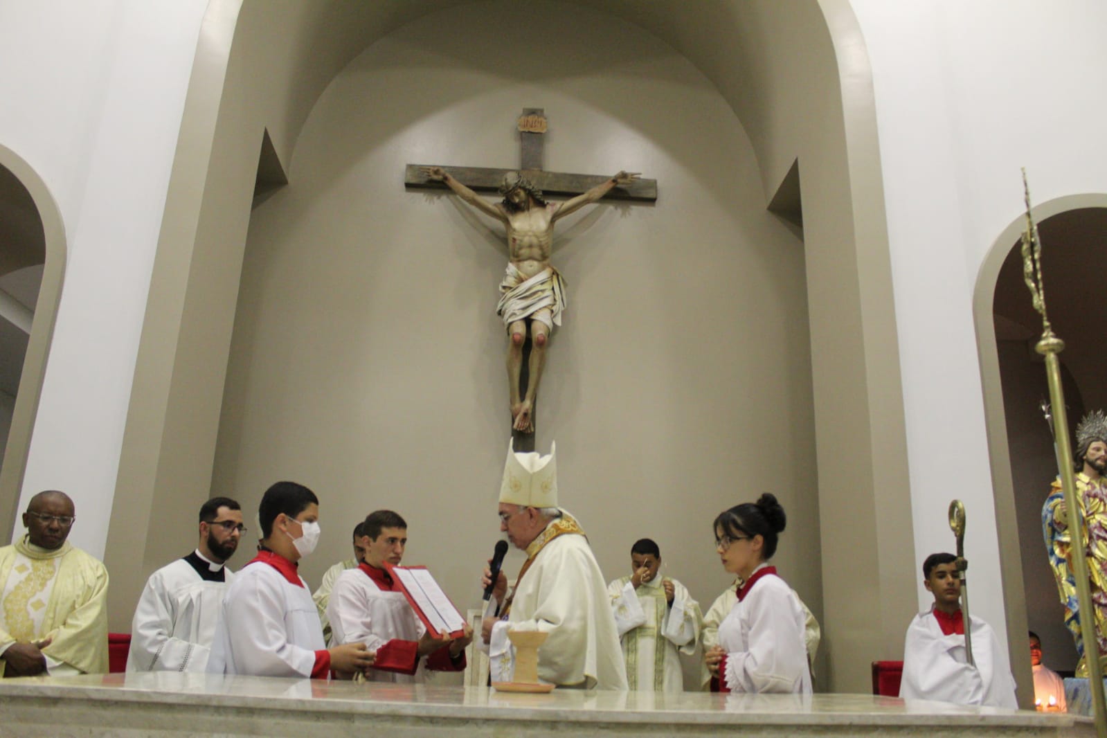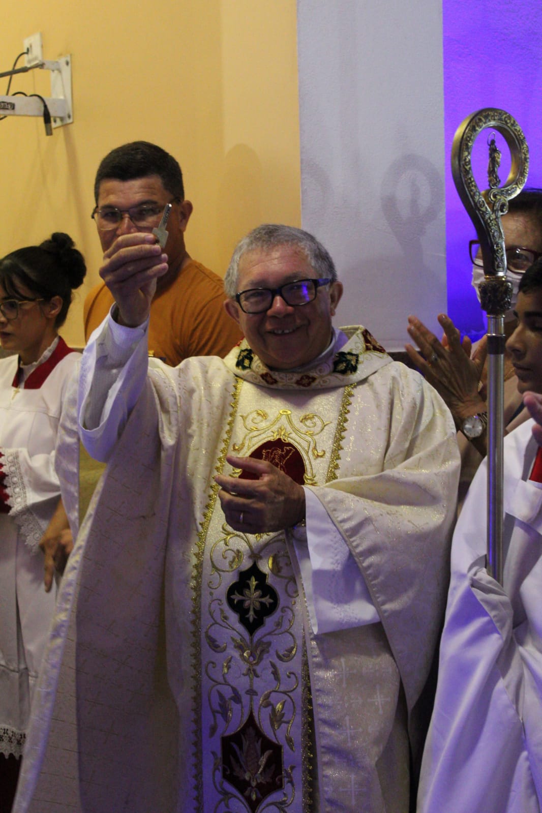 Padre Mariano também fez um pronunciamento, no qual agradeceu o apoio incondicional de todos, comunidade paroquial e autoridades locais, bem como do bispo diocesano, que sempre esteve presente, acompanhando, e o manteve na paróquia para a continuidade e finalização dos trabalhos, que começaram em 2012, sob o pastoreio de Dom Severino Batista de França (Bispo Emérito de Nazaré). “A palavra é gratidão. A gente acreditou”, disse, recordando um trecho do Evangelho de São Lucas (Lc 1,45).