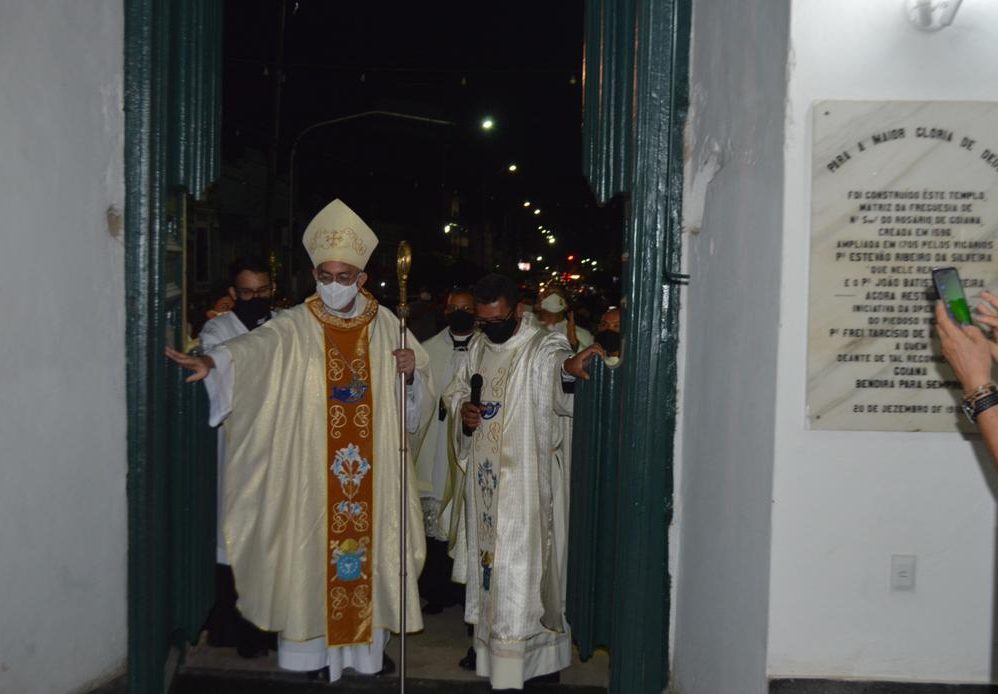 A reabertura da Igreja Matriz de Nossa Senhora do Rosário dos Homens Brancos, em Goiana-PE, aconteceu na noite de ontem, 04 de fevereiro de 2021, às 19h, numa celebração festiva presidida pelo bispo diocesano, Dom Francisco de Assis Dantas de Lucena. Alguns sacerdotes e diáconos da Diocese de Nazaré participaram da eucaristia solene, dentre eles os padres José Edson (pároco) e Magno Anacleto (vigário paroquial de Goiana).