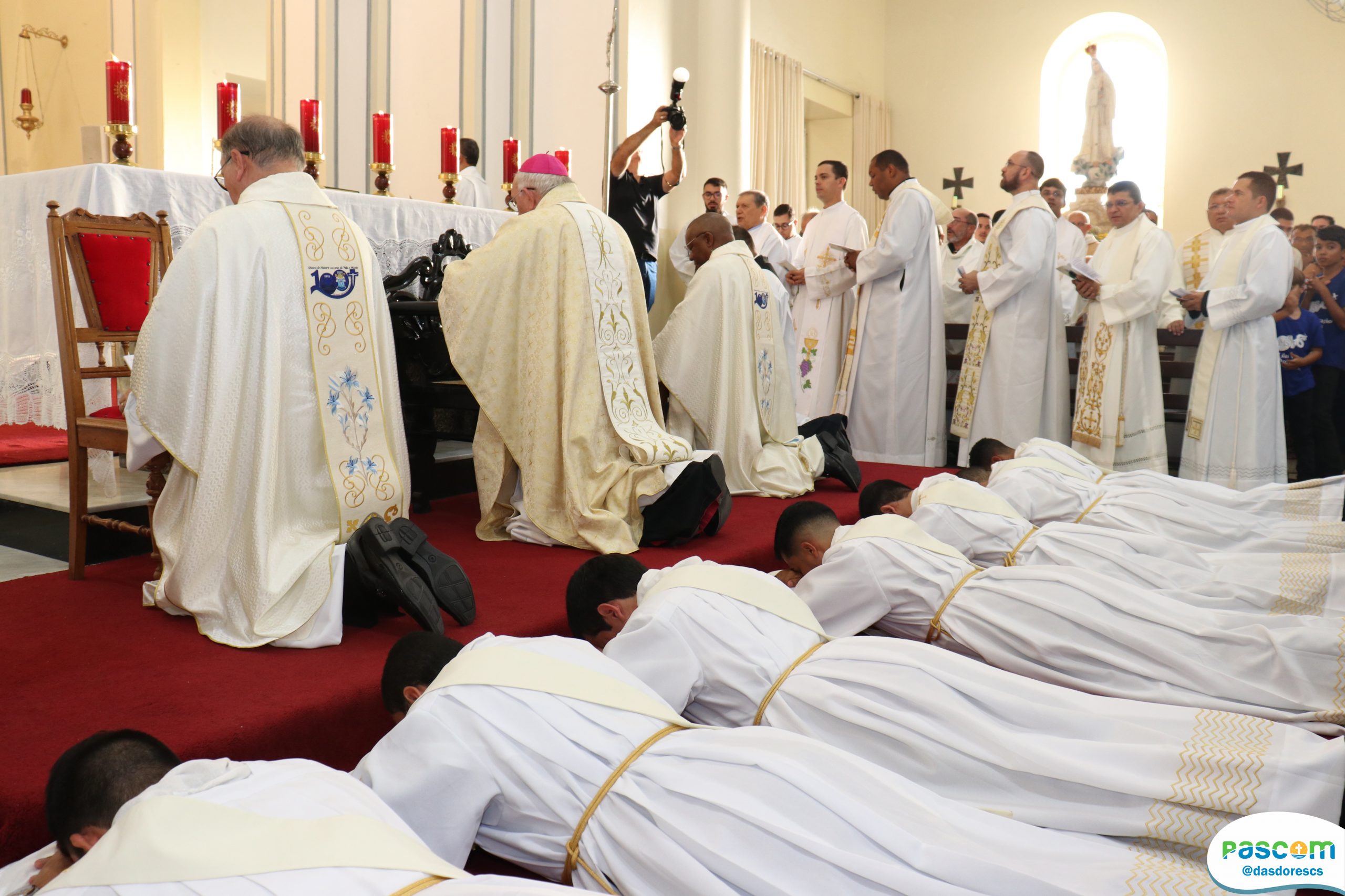 “Que momento feliz e jubiloso estamos vivendo! Repletos de ação de gratidão, queremos bendizer ao Senhor porque Ele é bom, bom para a nossa Igreja, dando-nos a alegria de ter, hoje, mais sete sacerdotes, neste terceiro ano vocacional do Brasil”, falou o bispo diocesano, no início de sua homilia, tecendo uma saudação especial aos familiares presentes, à Obra das Vocações Sacerdotais (OVS) e aos benfeitores e formadores dos seminários.