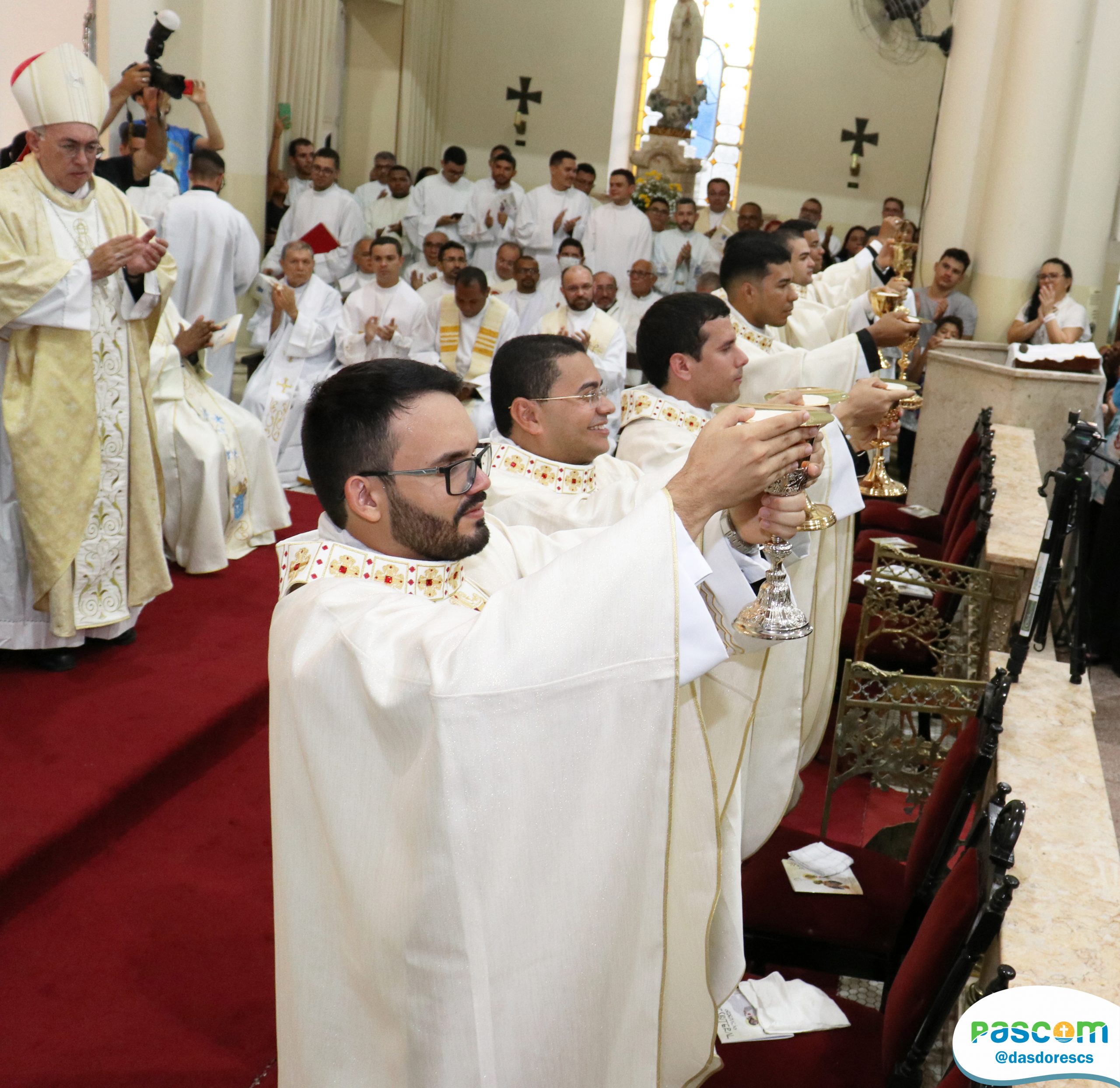 E, recordando do dia de sua ordenação, falou diretamente aos novos presbíteros: “Nunca se acostumem com a eucaristia; que cada eucaristia seja como se fosse a primeira que vocês vão celebrar. […] Nunca se acostumem com esse mistério, com essa ação de graças, e que vocês possam dar razões da esperança diante de todas aquelas pessoas que questionam, incomodam ou simplesmente vão confiar a vocês as suas vidas. Que vocês sejam sacerdotes bons, fiéis e, sobretudo, sensíveis às demandas e aos sofrimentos do nosso povo. Sejam sacerdotes felizes!”, animou-os.