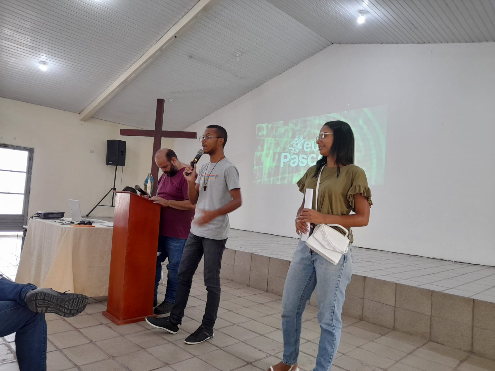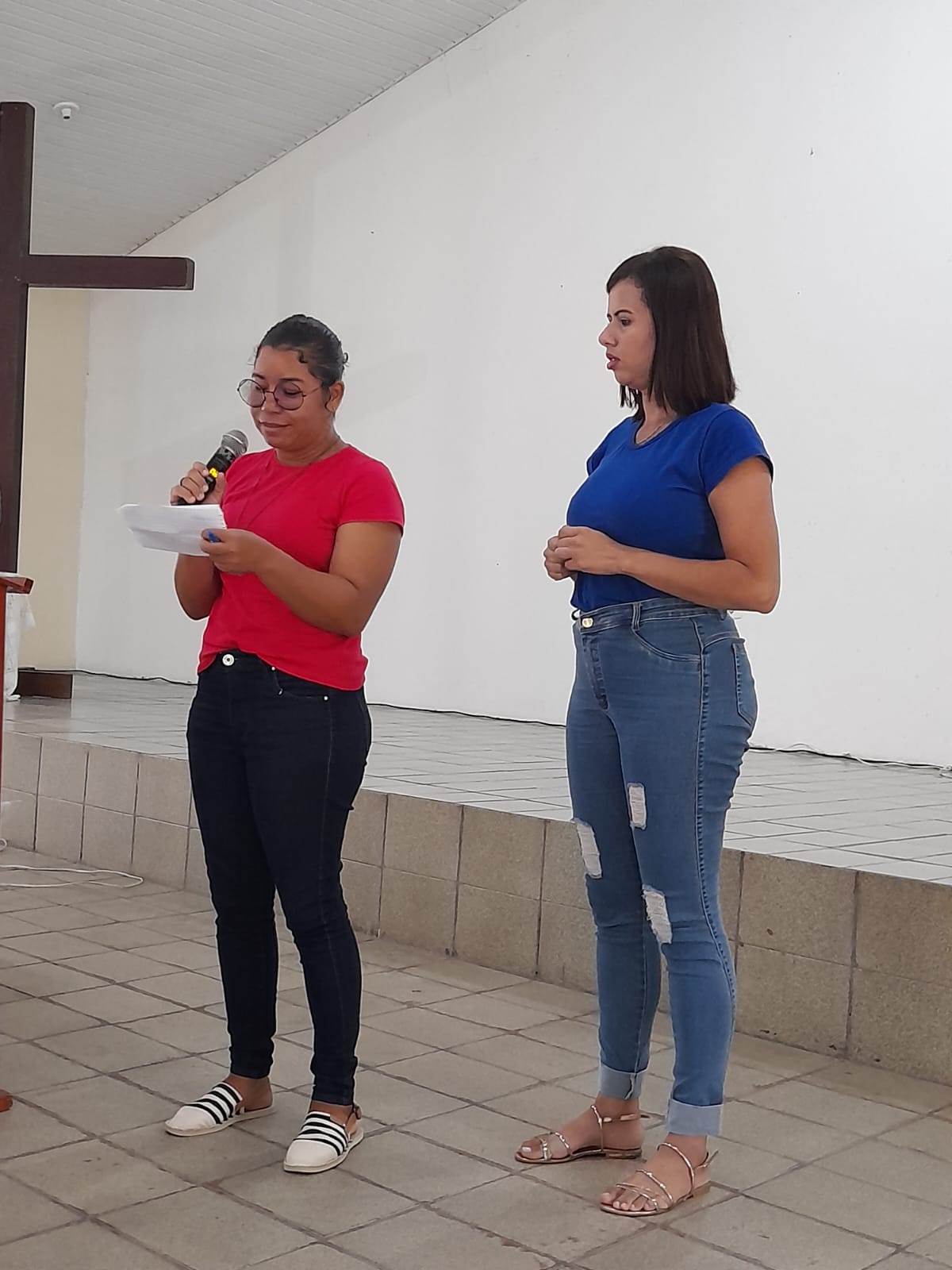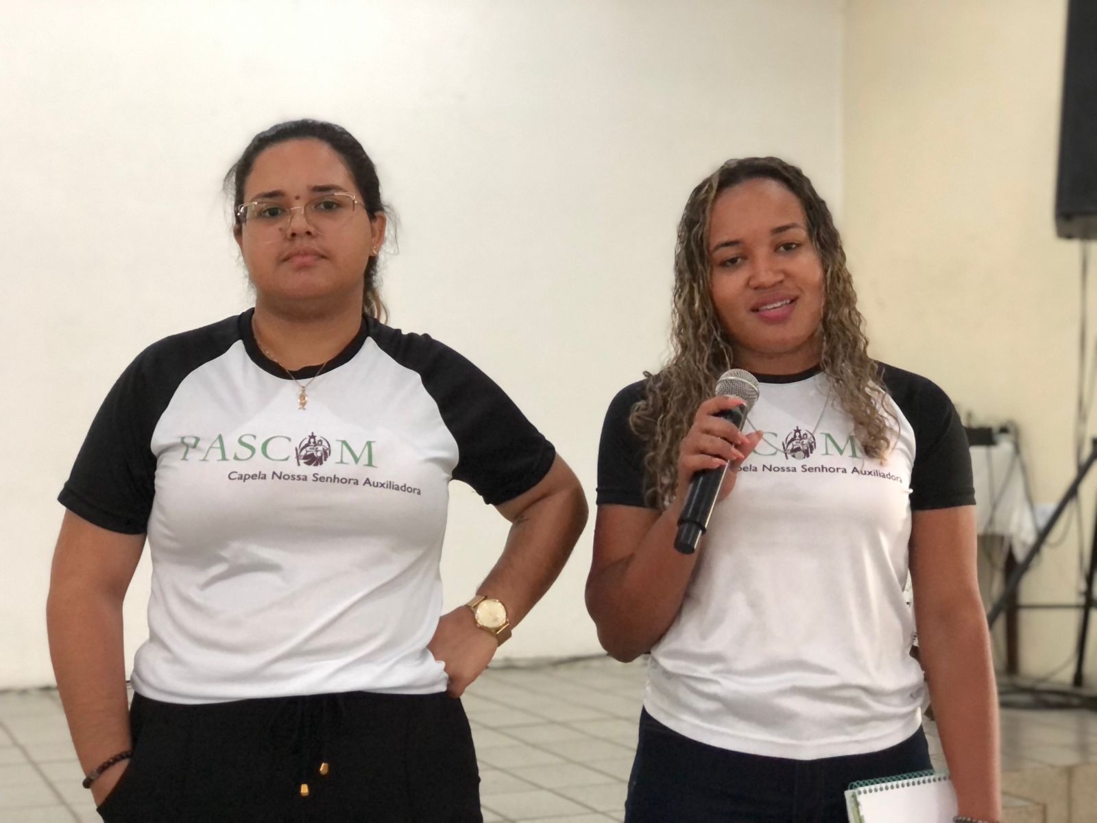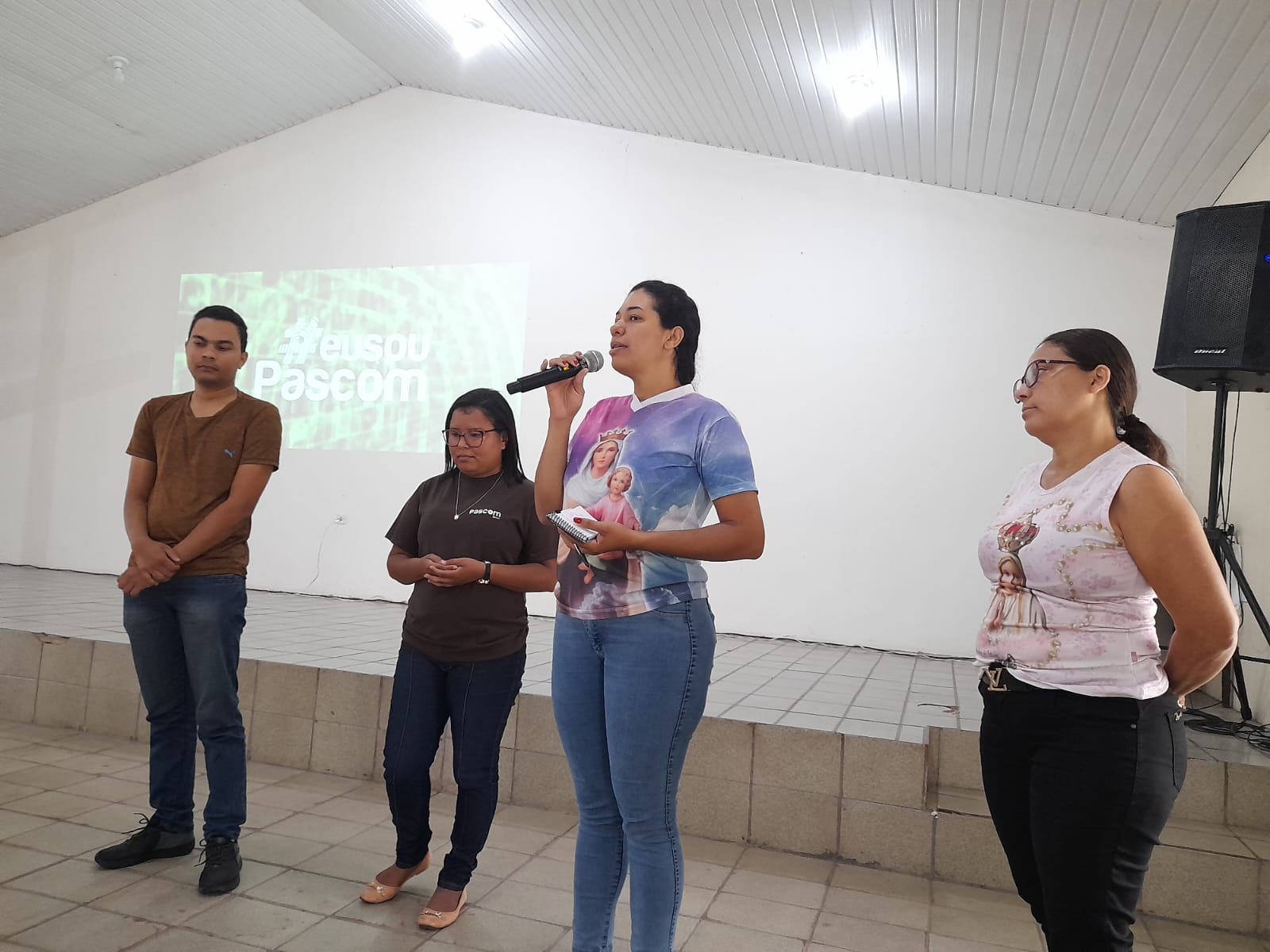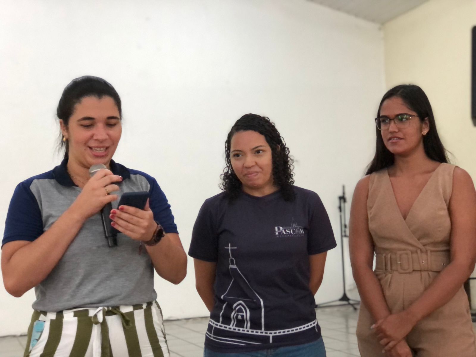 A programação começou com um momento de oração conduzido por Rozelane Silva (Pascom Diocesana), representante da Região Pastoral Surubim. Em seguida, Luanna Loren (Pascom Diocesana), representante da Região Pastoral Limoeiro, dividiu o grande grupo em duplas para responder a seguinte pergunta: “Qual a missão do agente da Pascom?”.