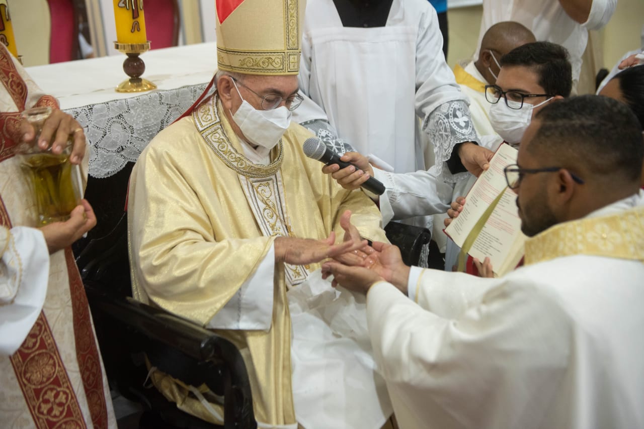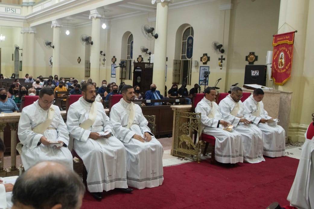 Após a proclamação do Evangelho teve início o rito de ordenação, com a apresentação dos candidatos. Em seguida, o bispo iniciou sua homilia citando o padre Alex Bruno (Área Pastoral São Lourenço, Goiana-PE), ordenado no ano passado, e o diácono permanente Marco Antônio (Limoeiro-PE), que seguem na luta para vencer a Covid-19, lembrando ainda de todos os que têm sido afetados por esse mal.