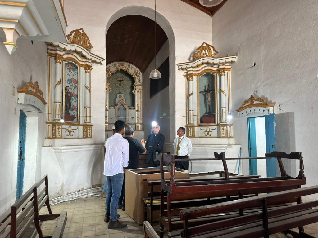 O bispo diocesano de Nazaré, Dom Francisco Lucena, esteve em Goiana na manhã de quarta-feira (12/11/25), às 10h30, para acompanhar o andamento das obras que estão sendo realizadas na Igreja da Soledade e no Abrigo de Idosos São José.