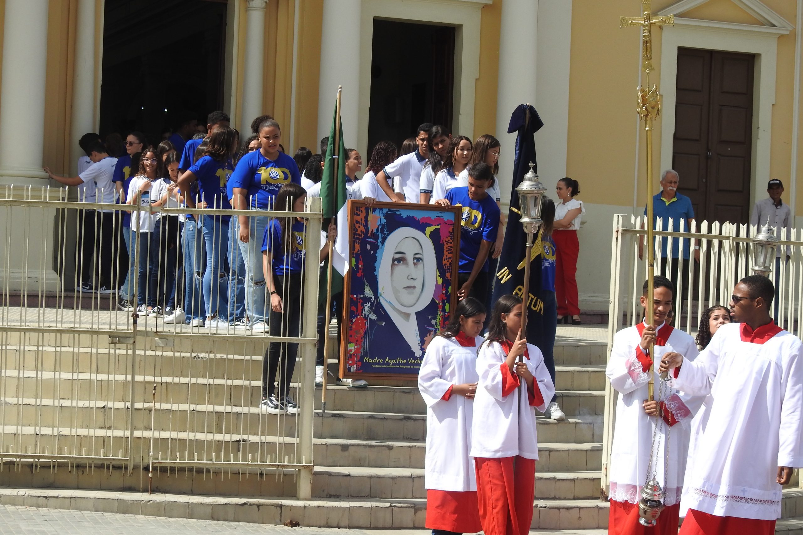 Por fim, dirigindo às RIC, o bispo de Nazaré disse: “Reverendas Religiosas da Instrução Cristã à semelhança da Madre Agathe, para que muitos centenários sejam celebrados, tenham coragem, espírito de fé e obediência, acolhida afetuosa, dedicação, zelo, ousadia missionária, perseverança, discernimento aos sinais dos tempos, abertura ao novo, coerência de vida, determinação e transparência no agir. Entreguemos a Jesus o que nos pesa e recebamos em nossos ombros o jugo suave e leve do Evangelho. Sejamos mansos e humildes de coração, com Jesus e como Jesus. Parabéns, Colégio Santa Cristina! 100 anos: aprendendo e transformando, juntos!”.