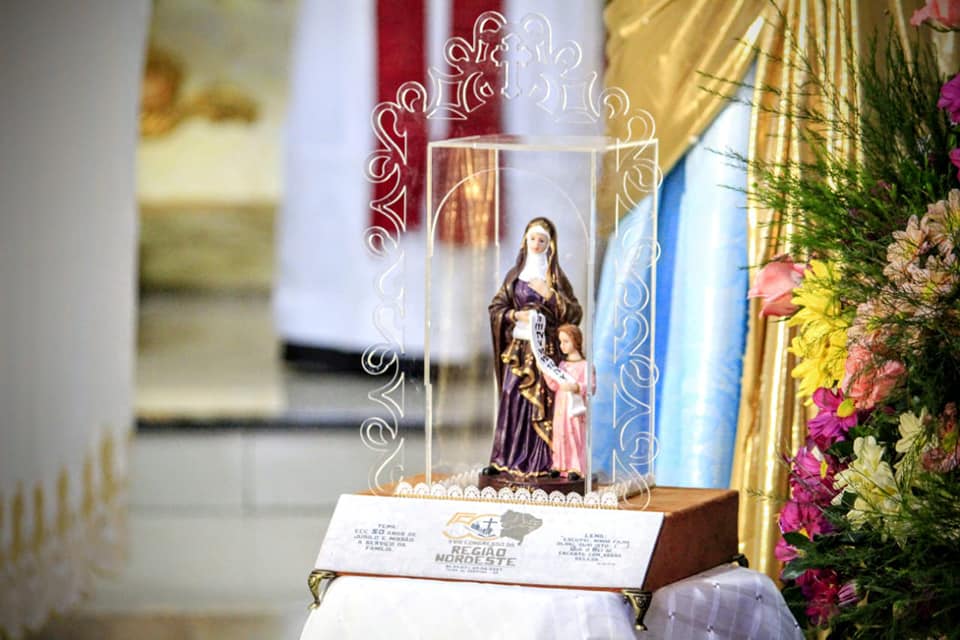 A Diocese de Nazaré se despediu, na última terça-feira, 25 de maio, da imagem peregrina de Sant’ana, padroeira do XVIII Congresso do Encontro de Casais com Cristo (ECC) da Região Nordeste, que esteve peregrinando em algumas cidades do nosso território diocesano desde o dia 21 de maio. Ao longo deste período, a imagem visitou as paróquias Divino Espírito Santo, em Paudalho-PE (21/05); Sant’Ana, em Vicência-PE (22/05); São Sebastião, em Limoeiro-PE (23/05), e Nossa Senhora da Conceição, em Nazaré da Mata-PE (24 e 25/05).