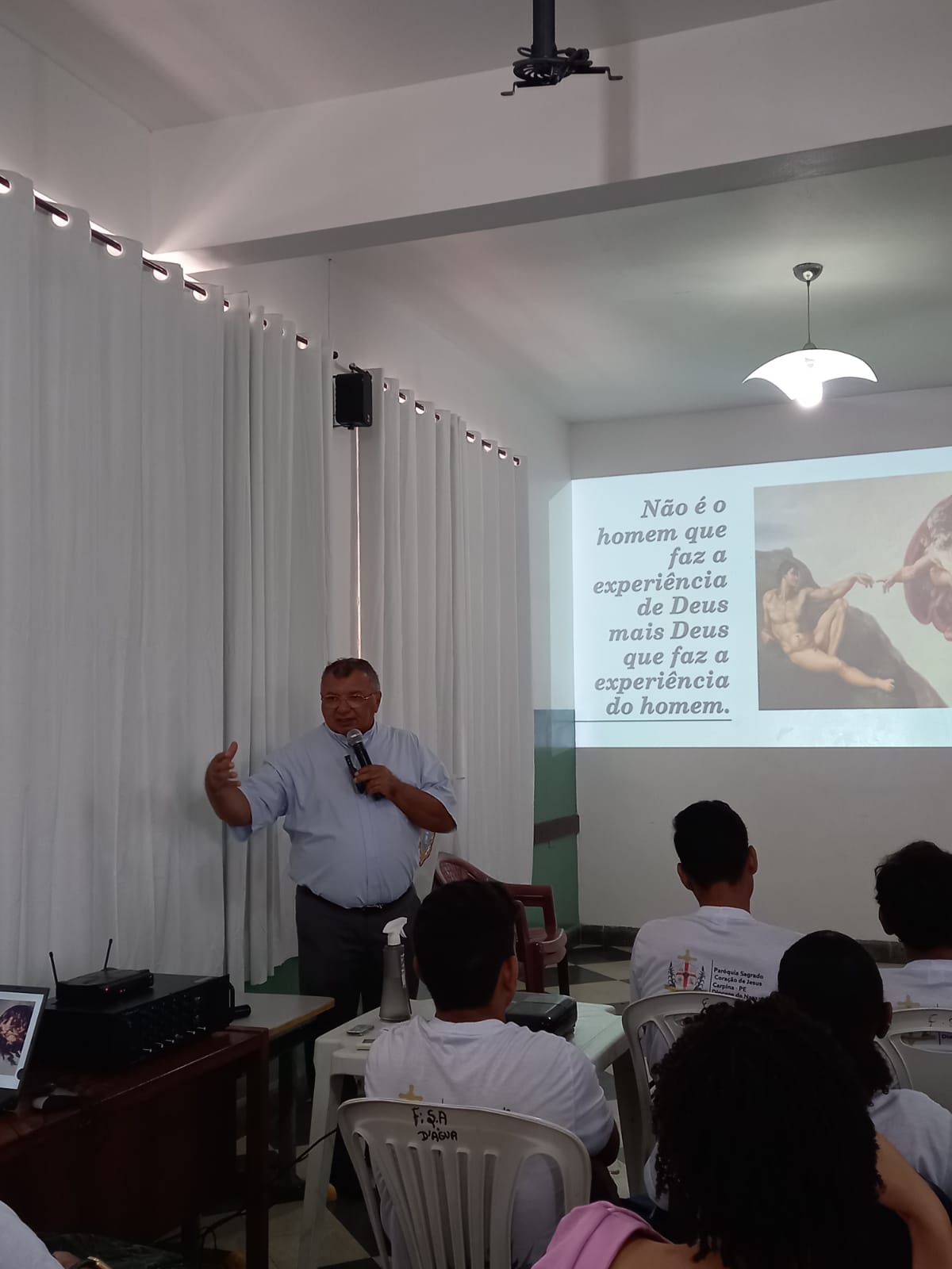 Na sequência, houve uma palestra com o coordenador diocesano do SAV, padre Aluísio Ramos, sobre chamado, vocação. Em seguida, foi servido um lanche, enquanto os participantes puderam visitar os stands vocacionais montados no salão do referido instituto e conhecer um pouco de cada dimensão vocacional.
