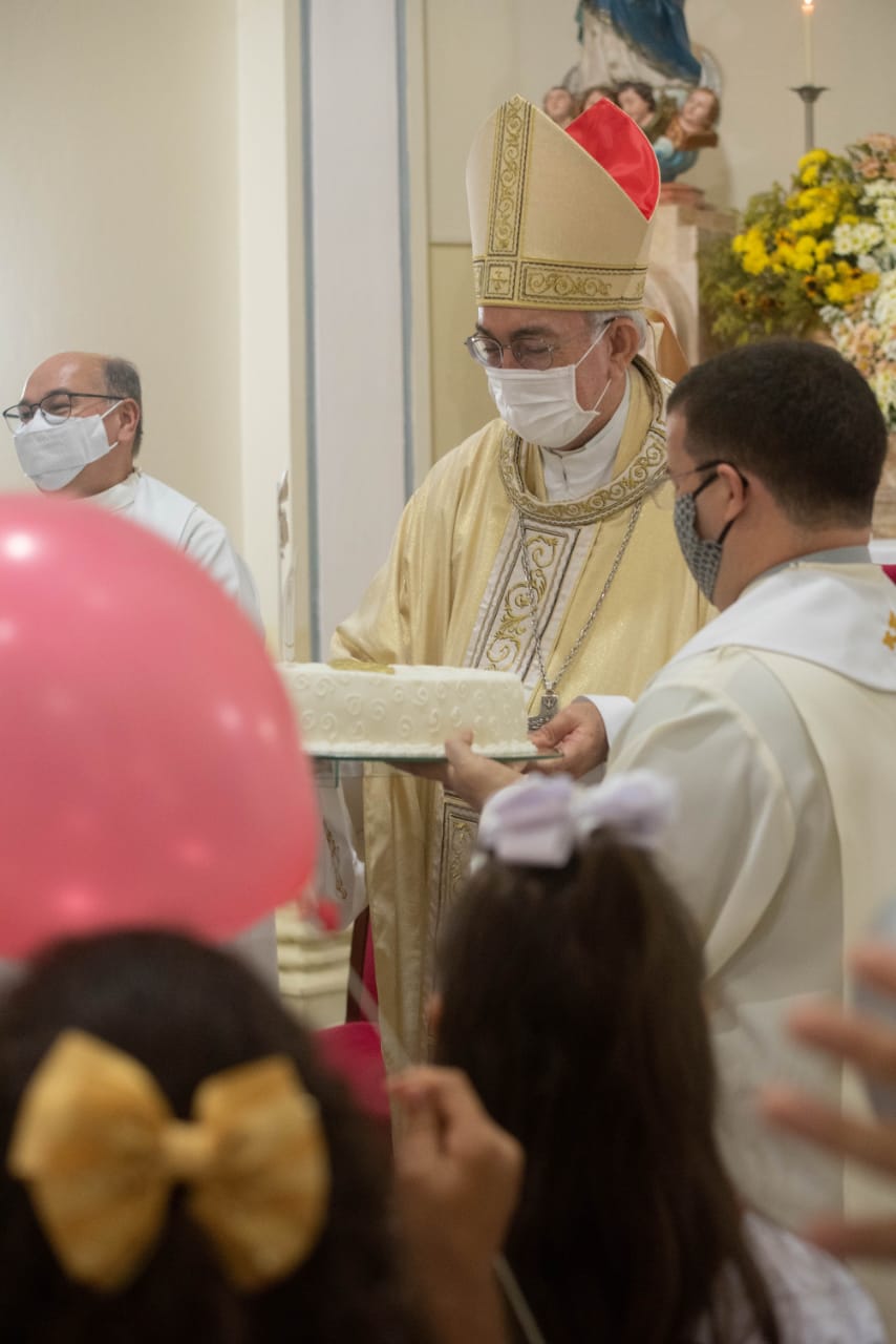 Foi realizada, ainda, uma breve apresentação que falava de seu chamado e de sua resposta ao Senhor “para uma grande missão”. Música, cartazes e a entrada de crianças com bolas de sopro marcaram esse momento especial. Por fim, o bolo de aniversário e o canto dos parabéns concluíram as homenagens a Dom Francisco Lucena pelos seus 30 anos de ordenação sacerdotal.