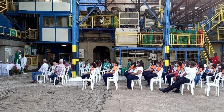 O bispo diocesano, Dom Francisco Lucena, presidiu, na tarde de ontem (30), às 16h, a missa que marcou o início da moagem da safra 2021/2022 na Usina Olho D’Água, na cidade de Camutanga-PE. A eucaristia foi concelebrada pelos padres Samuel Santos (administrador paroquial da Paróquia Nossa Senhora do Rosário, em Camutanga) e Adriano Pereira (vigário paroquial) e contou com a participação de funcionários, alunos e moradores da usina. Após a celebração, o bispo aspergiu com água benta as máquinas e os funcionários para o começo dos trabalhos.