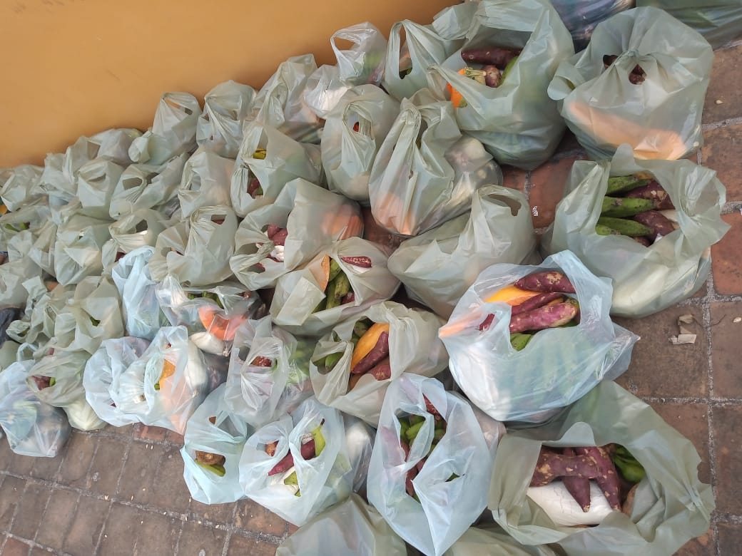 Macaxeira, batata doce, inhame, jerimum, coentro, massa de mandioca, beiju, banana e limão foram alguns dos alimentos doados por famílias de agricultores beneficiados com a reforma agrária na zona rural da cidade e que no passado recente passavam fome e eram vítimas de preconceito e violência por parte do Estado, porque buscavam a efetivação do direito à terra.
