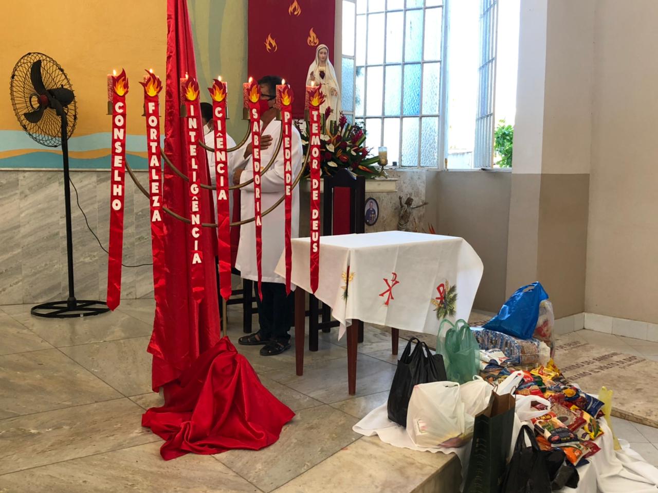 Na Paróquia Divino Espírito Santo, em Paudalho-PE, alimentos e outros itens foram arrecadados durante todo o novenário, realizado de 14 a 23 de maio de 2021. No domingo (23), inclusive, a missa solene da festa do Divino Espírito Santo, padroeiro da cidade, às 10h, foi presidida pelo bispo diocesano, Dom Francisco Lucena, e concelebrada pelos padres Artur Alexandre (pároco) e Alex Antônio (vigário paroquial).
