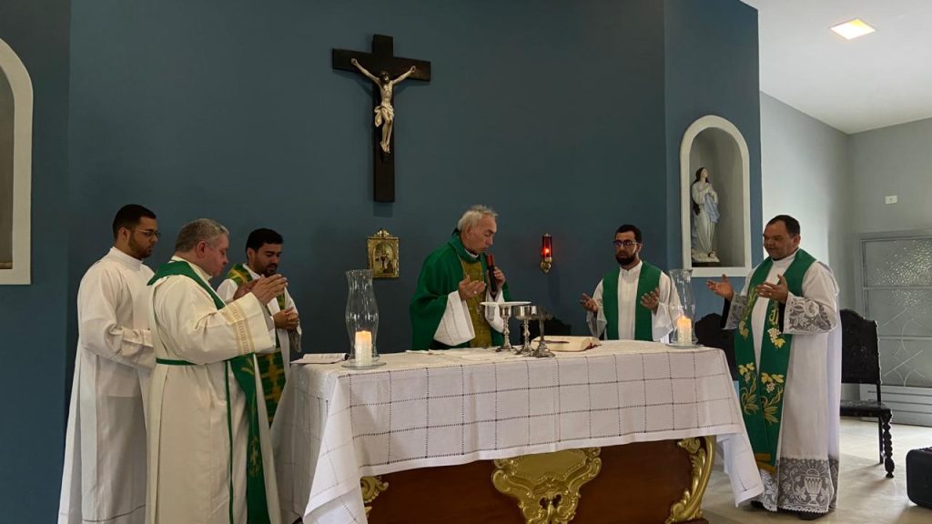 Estivam presentes na celebração eucarística de encerramento o reitor do Seminário Maior Rainha dos Apóstolos, padre José Cleiton Barbosa; o reitor do Seminário Nossa Senhora de Lourdes (Propedêutico), padre Ayrton Barbosa; o padre Antonio Lucena (Paróquia Nossa Senhora da Conceição, João Alfredo-PE) e o pregador do retiro, padre Elvis Feliciano da Silva (Arquidiocese da Paraíba-PB).