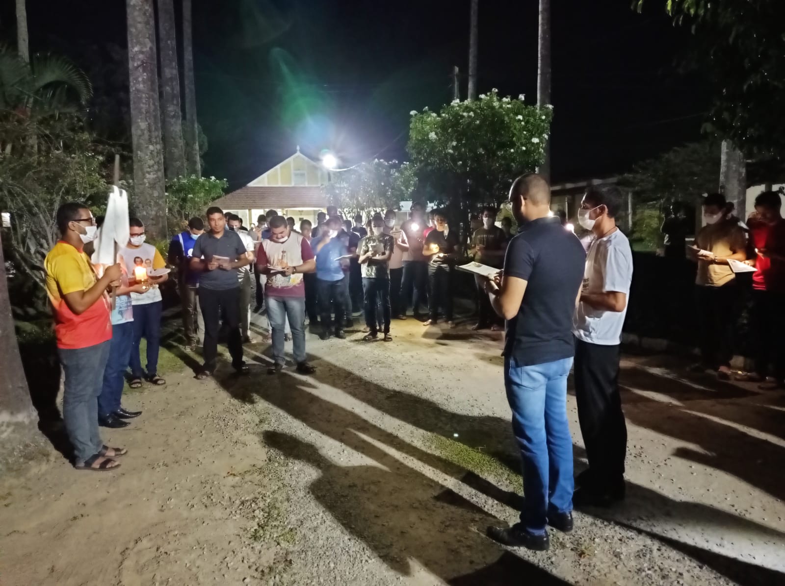 Ao longo dos dias de retiro, o padre Allysson refletiu sobre os Exercícios Espirituais de Santo Inácio de Loyola – uma série desses exercícios foram praticados todos os dias. A programação também contou com outros momentos que oportunizaram uma vivência de oração e espiritualidade: recitação do terço mariano, adoração ao Santíssimo Sacramento, via-sacra, celebração penitencial e confissões.