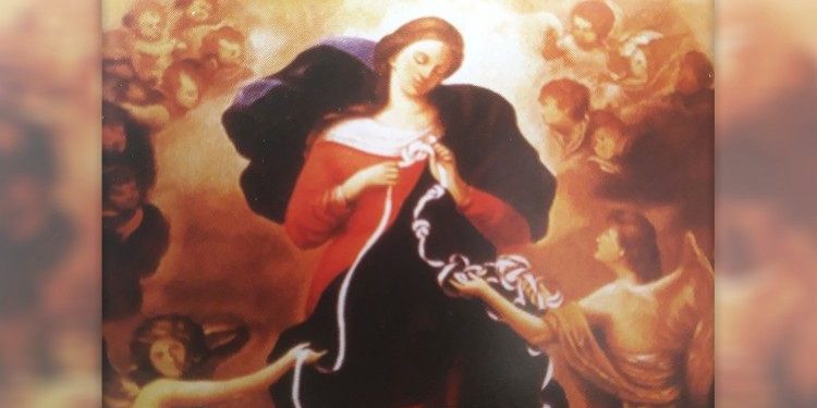 O ícone que representa a Nossa Senhora encontra-se em Augsburg, Alemanha, e consiste em uma pintura a óleo sobre tela feita pelo pintor alemão Johann Georg Melchior Schmidtner por volta de 1700. A pintura retrata Nossa Senhora desatando os nós de uma fita branca segurada por dois anjos, rodeada de cenas bíblicas que se referem simbolicamente a imagens de esperança, misericórdia e vitória sobre o mal. “Cópia única do ícone original conhecido em toda a Baviera por ocasião de uma peregrinação das dioceses bávaras a Augsburg realizada no ano de 2015, será trazido a Roma pelo bispo de Augsburg, Dom Bertram Johannes Meier”, que o presenteará ao Papa Francisco, informa o comunicado do Pontifício Conselho para a Promoção da Nova Evangelização, que organizou a iniciativa da maratona de oração. A escolha desta imagem quer representar uma oração particular para que Nossa Senhora interceda para “desmanchar” o sofrimento que uniu o mundo neste tempo de crise sanitária, mas também as relações econômicas, psicológicas e sociais. O Papa sempre demonstrou uma forte devoção a esta imagem, e difundiu seu culto, particularmente na Argentina.